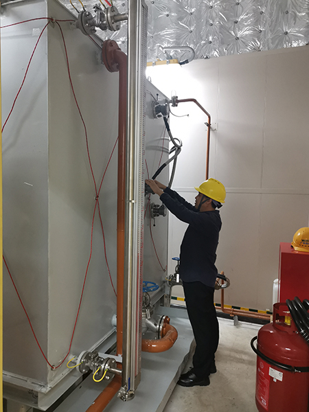 11月7日凌晨6點,東方剛露出魚肚白。孫利勤踏著晨露,帶著虹潤產(chǎn)品和測試安裝設(shè)備馬不停蹄來到了珠海港口,經(jīng)過2個多小時的海上跋涉,終于到了海上風(fēng)電升壓站現(xiàn)場,對于客戶提到的技術(shù)要求,孫利勤先是對現(xiàn)場環(huán)境進(jìn)行測試和判斷,與客戶認(rèn)真溝通制定了技術(shù)應(yīng)用方案,并于次日成功安裝。虹潤儀表現(xiàn)場表現(xiàn)良好,對海上升壓站TC690L柴油發(fā)電設(shè)備液位控制精度高且運行穩(wěn)定,得到了客戶的好評。解決了客戶的技術(shù)需求,虹潤人的心也放下了,這次跨越大海的技術(shù)服務(wù)終于不辱使命。