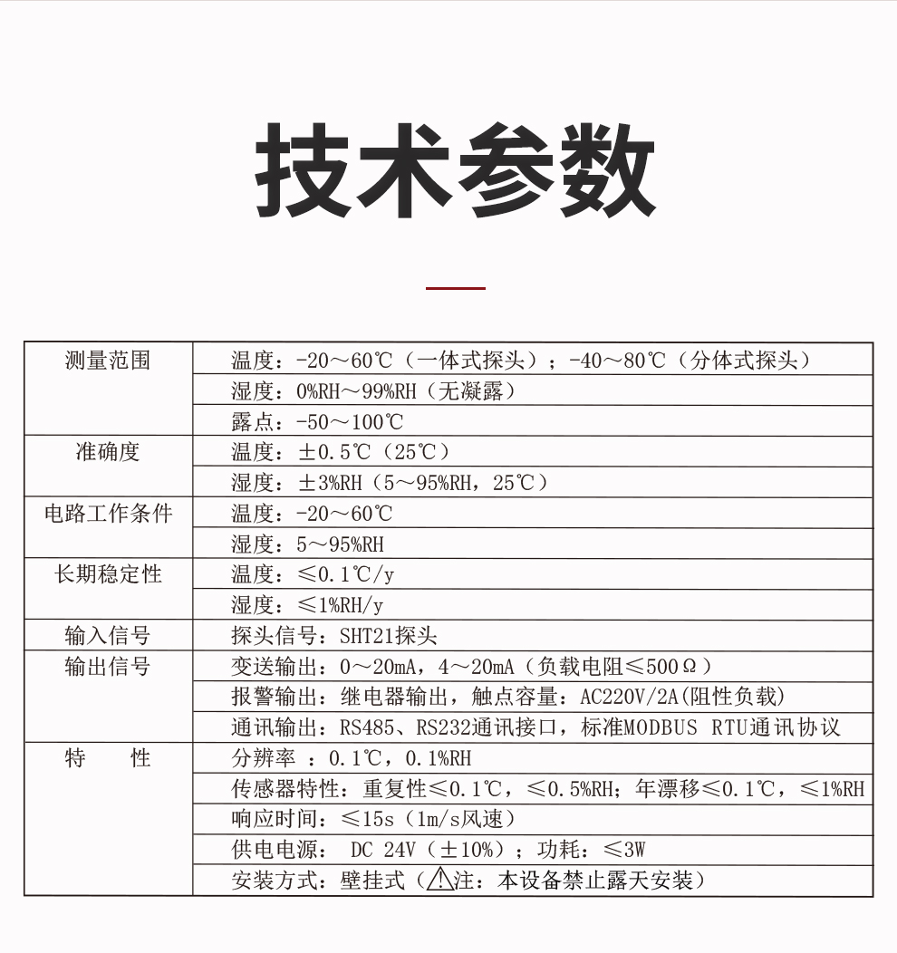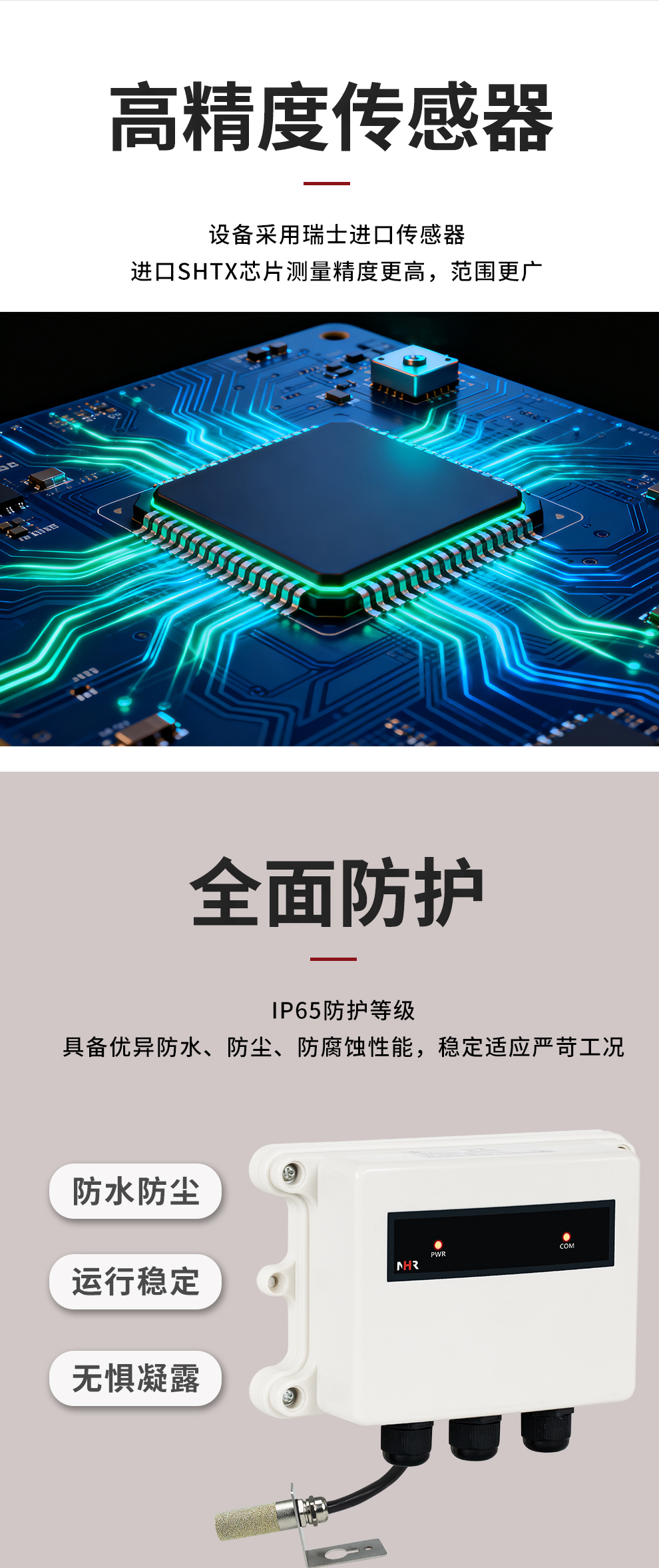 虹潤公司是專業(yè)生產環(huán)境監(jiān)測儀表的國家專精特新“小巨人”企業(yè)。生產的一體式溫濕度變送器,具有溫度、濕度、露點高精準的測量與變送,報警繼電器輸出,RS485/RS232通訊,IP65防護等級等特點。產品獲得一種手持式低功耗溫濕度檢測儀、大屏幕溫濕度記錄儀等2項國家發(fā)明專利,主持起草物聯(lián)網智能溫度儀表通用技術條件、冷鏈溫度記錄儀等2項國家標準,以及通信系統(tǒng)多通道數(shù)據(jù)采集控制終端規(guī)范軍用標準,以及現(xiàn)場設備集成等5項智能制造國家標準,參與國際5G標準制定,取得溫濕度儀表等3項相關軟件著作權。產品廣泛應用于工業(yè)現(xiàn)場、農業(yè)大棚、倉儲物流、地下管廊、養(yǎng)殖孵化、配電機房等諸多領域。