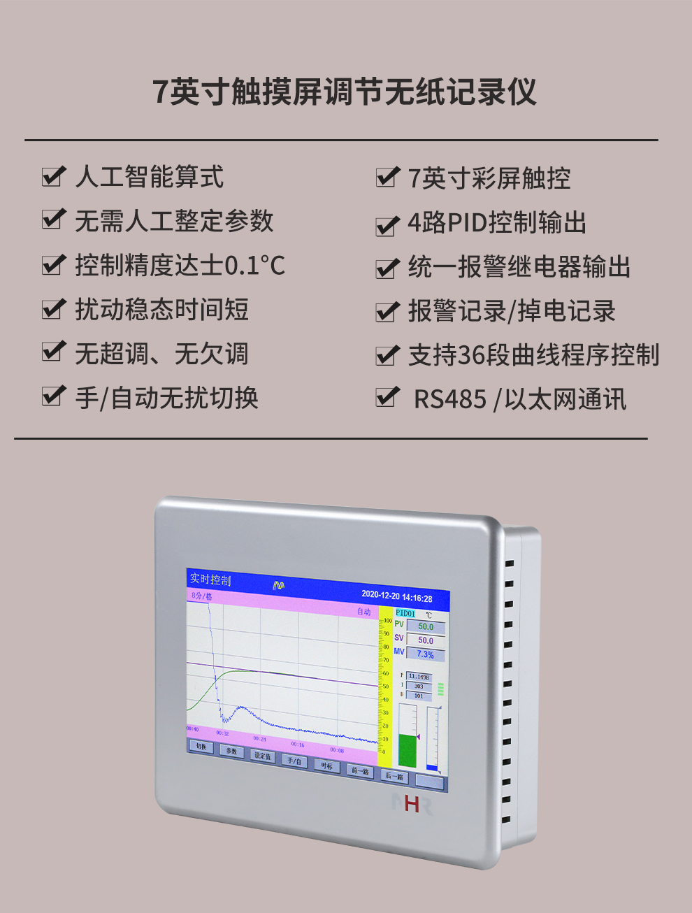 虹潤公司是專業(yè)生產(chǎn)無紙記錄儀的國家專精特新“小巨人”企業(yè)。生產(chǎn)的觸摸屏調(diào)節(jié)無紙記錄儀,具有觸摸大屏顯示,真正人工智能算式,無需人工整定參數(shù),控制精度達士0.1°C,數(shù)據(jù)記錄與轉(zhuǎn)存, RS485/以太網(wǎng)通訊,5/7/9英寸可選等特點。產(chǎn)品獲得智能化控制器、人工智能調(diào)節(jié)器及調(diào)節(jié)方法、模糊PID控制儀及控制方法、平板無紙記錄儀、巡回檢測顯示方法及裝置等5項國家發(fā)明專利,主持起草物聯(lián)網(wǎng)智能記錄儀表通用技術(shù)條件、物聯(lián)網(wǎng)智能溫度儀表通用技術(shù)條件、工業(yè)過程測量和控制系統(tǒng)用智能調(diào)節(jié)器等3項國家標準,通信系統(tǒng)多通道數(shù)據(jù)采集控制終端規(guī)范軍用標準,以及空間數(shù)據(jù)與信息數(shù)據(jù)傳輸系統(tǒng)等2項航天標準,參與國際5G標準制定,取得觸摸屏彩色調(diào)節(jié)無紙記錄儀等3項相關(guān)軟件著作權(quán)。產(chǎn)品廣泛應(yīng)用于電力、石化、冶金、化工、食品、制藥、熱處理、水處理、機械配套等諸多領(lǐng)域。