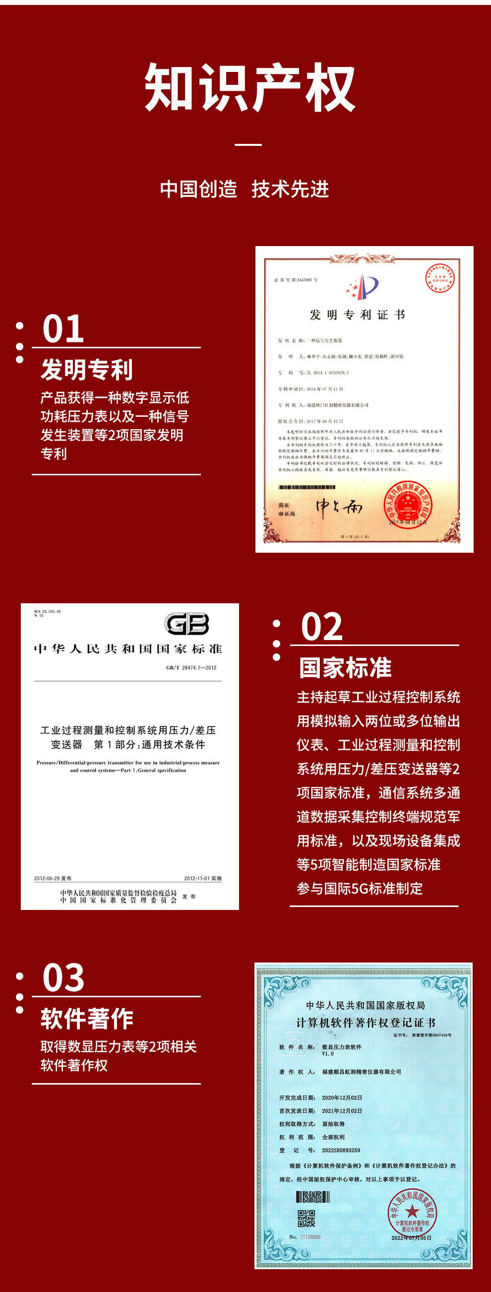 虹潤(rùn)公司是專(zhuān)業(yè)生產(chǎn)數(shù)顯壓力表的國(guó)家專(zhuān)精特新“小巨人”企業(yè)。生產(chǎn)的智能數(shù)字壓力表,具有氣體液體通用,測(cè)量精度高,自動(dòng)溫度補(bǔ)償,響應(yīng)速度快,電池供電低功耗漂移小等特點(diǎn)。產(chǎn)品獲得一種數(shù)字顯示低功耗壓力表以及一種信號(hào)發(fā)生裝置等2項(xiàng)國(guó)家發(fā)明專(zhuān)利,主持起草工業(yè)過(guò)程控制系統(tǒng)用模擬輸入兩位或多位輸出儀表、工業(yè)過(guò)程測(cè)量和控制系統(tǒng)用壓力/差壓變送器等2項(xiàng)國(guó)家標(biāo)準(zhǔn),通信系統(tǒng)多通道數(shù)據(jù)采集控制終端規(guī)范軍用標(biāo)準(zhǔn),以及現(xiàn)場(chǎng)設(shè)備集成等5項(xiàng)智能制造國(guó)家標(biāo)準(zhǔn),參與國(guó)際5G標(biāo)準(zhǔn)制定,取得數(shù)顯壓力表等2項(xiàng)相關(guān)軟件著作權(quán)。產(chǎn)品廣泛石化、冶金、電力、制藥、食品、航空航天、工業(yè)循環(huán)水系統(tǒng)等諸多領(lǐng)域。