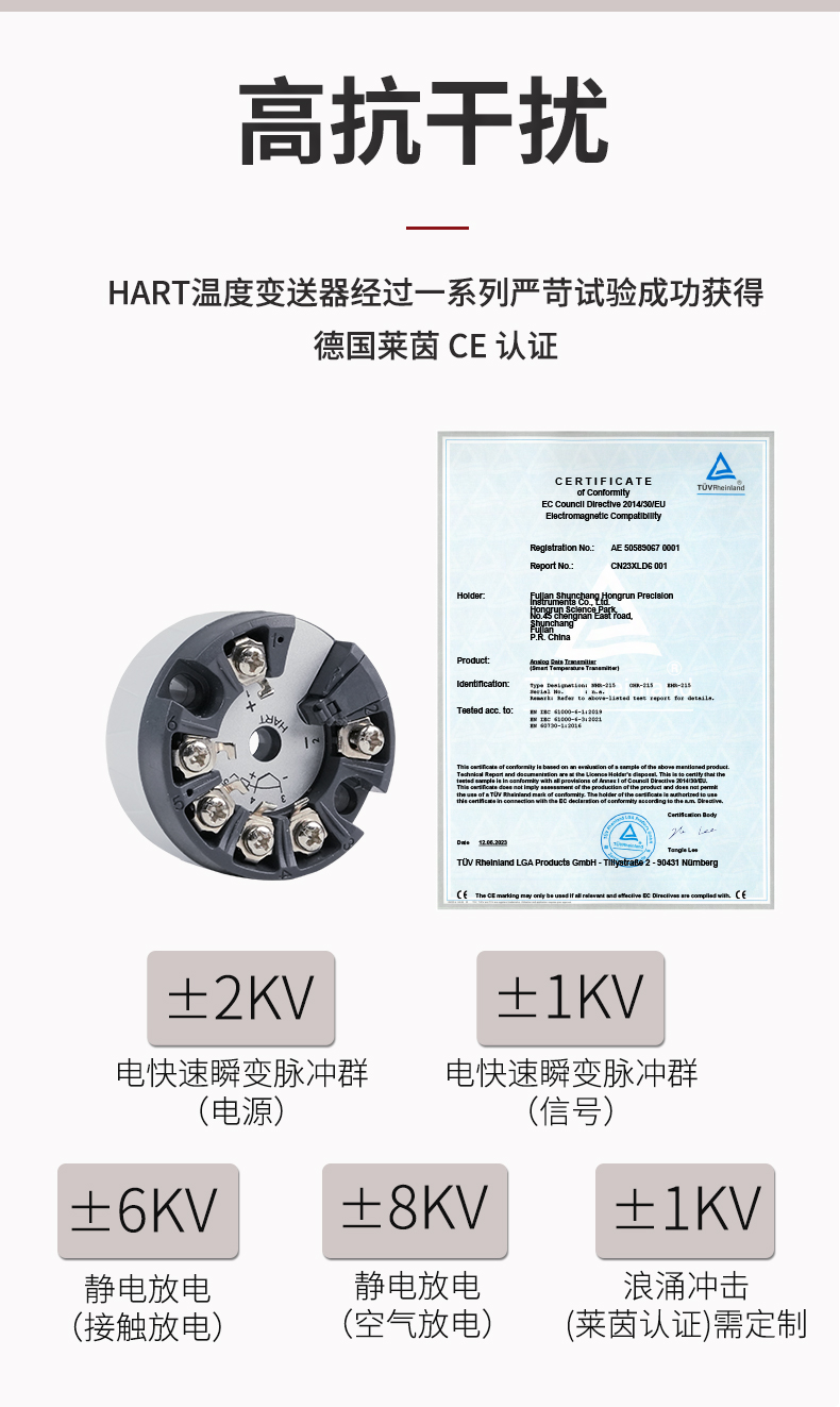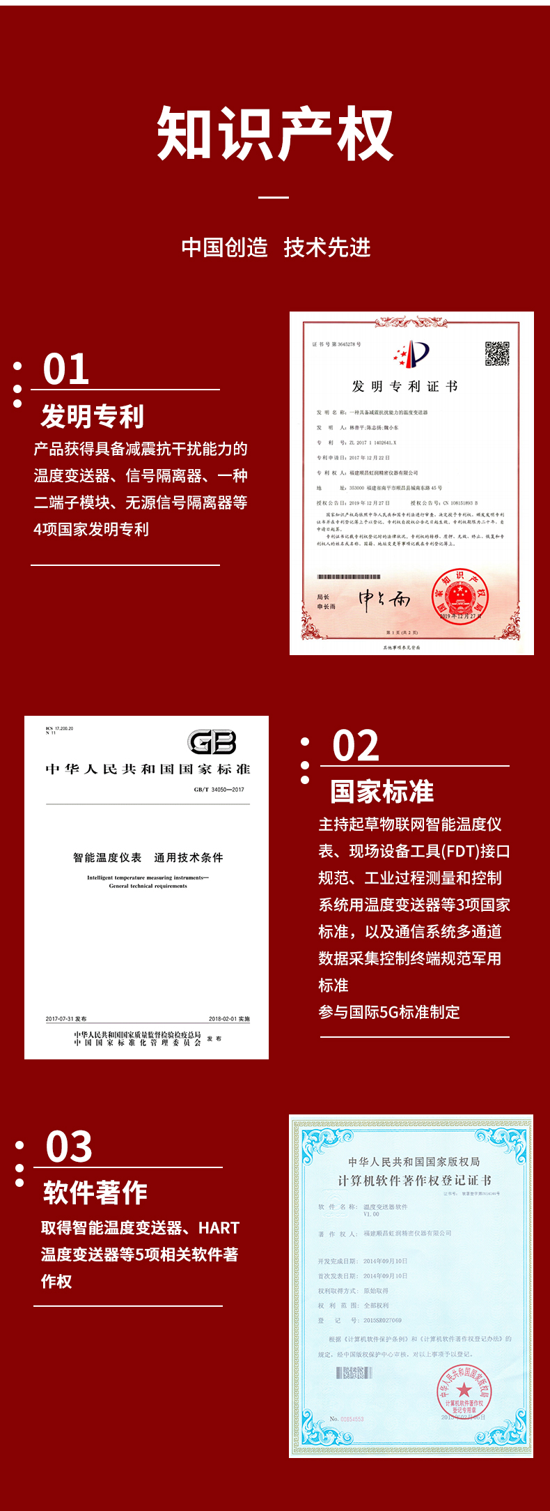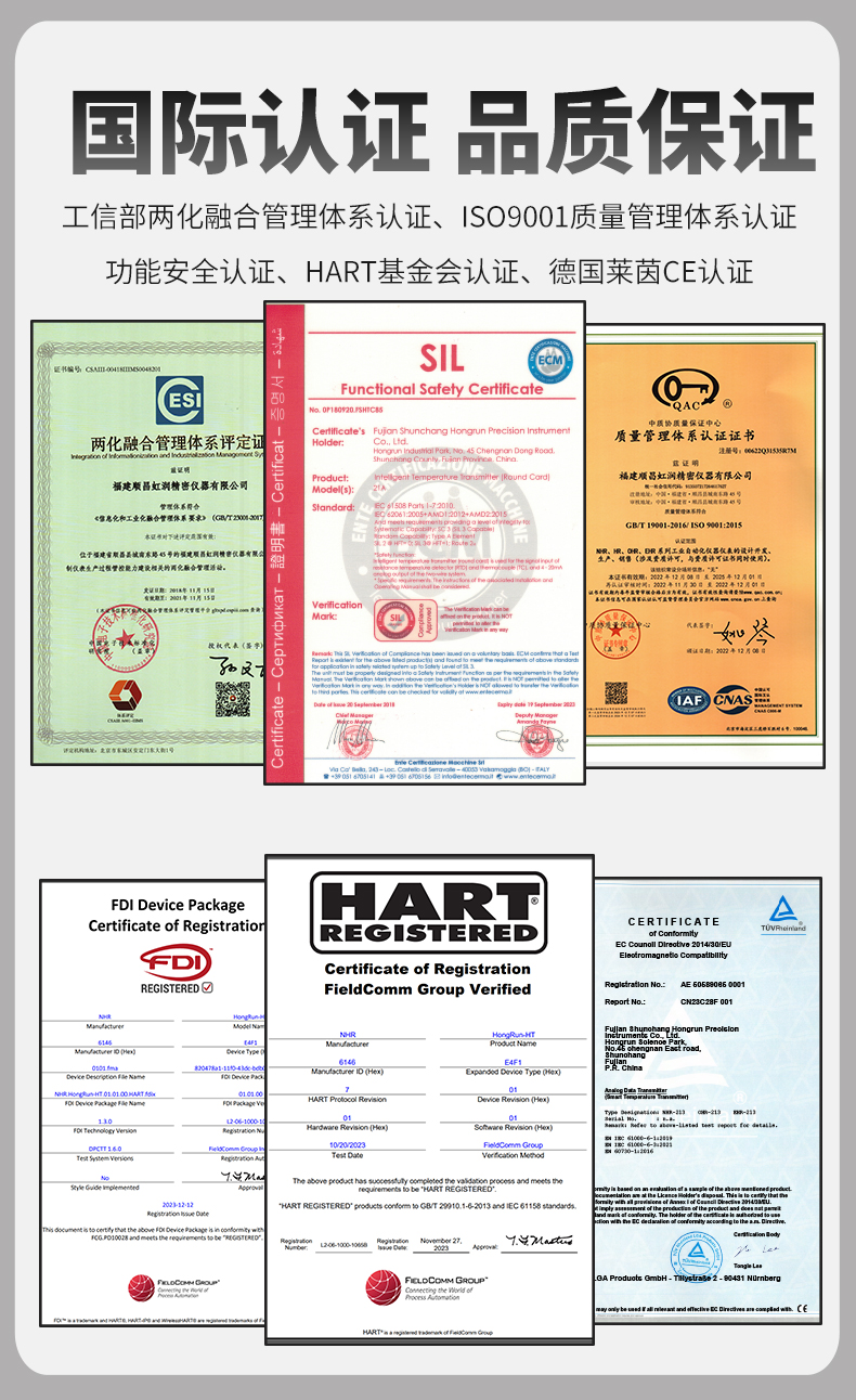 虹潤公司是專業(yè)生產(chǎn)溫度變送器的國家專精特新“小巨人”企業(yè)。生產(chǎn)的智能溫度變送器,具有適配各類溫度傳感器,精度高,穩(wěn)定性好,通過編程線修改輸入信號類型及量程,高抗干擾等特點(diǎn)。該產(chǎn)品不僅通過HART基金會認(rèn)證、德國萊茵 CE 認(rèn)證與 SIL 功能安全認(rèn)證,還獲得具備減震抗干擾能力的溫度變送器、信號隔離器、一種二端子模塊、無源信號隔離器等4項(xiàng)國家發(fā)明專利,主持起草物聯(lián)網(wǎng)智能溫度儀表、現(xiàn)場設(shè)備工具(FDT)接口規(guī)范、工業(yè)過程測量和控制系統(tǒng)用溫度變送器等3項(xiàng)國家標(biāo)準(zhǔn),以及通信系統(tǒng)多通道數(shù)據(jù)采集控制終端規(guī)范軍用標(biāo)準(zhǔn),參與國際5G標(biāo)準(zhǔn)制定,取得智能溫度變送器、HART溫度變送器等3項(xiàng)相關(guān)軟件著作權(quán)。產(chǎn)品廣泛應(yīng)用于石油、化工、電力、冶金、制藥、食品、水處理等各種工業(yè)領(lǐng)域。