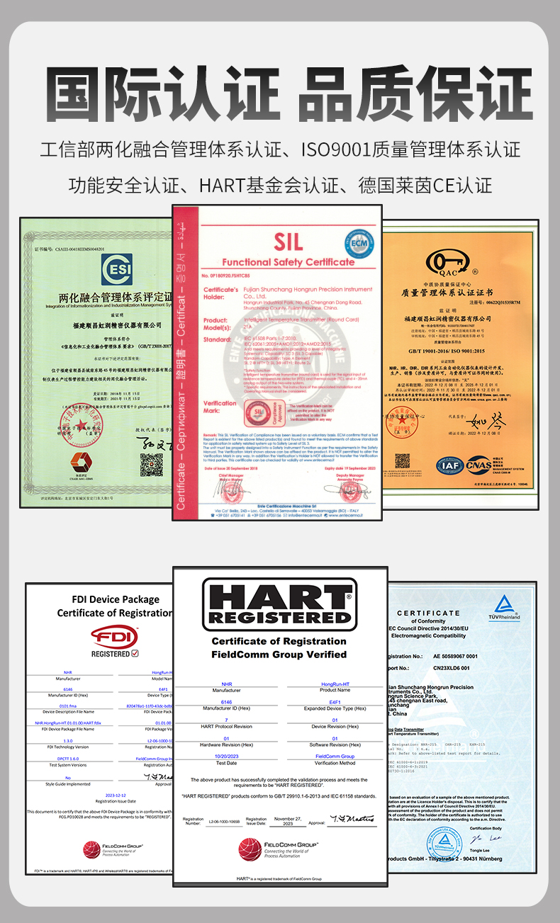 虹潤(rùn)公司是專業(yè)生產(chǎn)溫度變送器的國(guó)家專精特新“小巨人”企業(yè)。生產(chǎn)的智能溫度變送器,具有適配各類溫度傳感器,精度高,通過編程線修改輸入信號(hào)類型及量程,高抗干擾,HART或485通訊等特點(diǎn)。該產(chǎn)品不僅通過HART基金會(huì)認(rèn)證、德國(guó)萊茵 CE 認(rèn)證與 SIL 功能安全認(rèn)證,還獲得具備減震抗干擾能力的溫度變送器、信號(hào)隔離器、一種二端子模塊、無源信號(hào)隔離器等4項(xiàng)國(guó)家發(fā)明專利,主持起草物聯(lián)網(wǎng)智能溫度儀表、現(xiàn)場(chǎng)設(shè)備工具(FDT)接口規(guī)范、工業(yè)過程測(cè)量和控制系統(tǒng)用溫度變送器等3項(xiàng)國(guó)家標(biāo)準(zhǔn),以及通信系統(tǒng)多通道數(shù)據(jù)采集控制終端規(guī)范軍用標(biāo)準(zhǔn),參與國(guó)際5G標(biāo)準(zhǔn)制定,取得HART溫度變送器、智能溫度變送器等3項(xiàng)相關(guān)軟件著作權(quán)。產(chǎn)品廣泛應(yīng)用于石油、化工、電力、冶金、制藥、食品、水處理等各種工業(yè)領(lǐng)域。