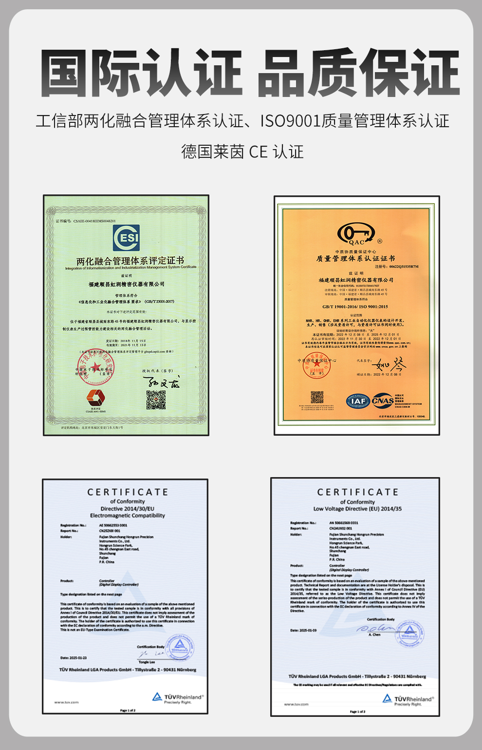 虹潤公司是專業(yè)生產(chǎn)數(shù)顯表的國家專精特新“小巨人”企業(yè),生產(chǎn)的簡易型數(shù)字顯示控制儀,具有全切換信號輸入,多種外形尺寸,高抗干擾,輸入/輸出/電源三隔離,性價比高等特點(diǎn)。該產(chǎn)品不僅通過德國萊茵 CE 認(rèn)證,還獲得巡回檢測顯示方法及裝置、儀表殼體等2項(xiàng)國家發(fā)明專利,主持起草工業(yè)過程控制系統(tǒng)用模擬輸入兩位或多位輸出儀表、物聯(lián)網(wǎng)智能溫度儀表通用技術(shù)條件等2項(xiàng)國家標(biāo)準(zhǔn),以及通信系統(tǒng)多通道數(shù)據(jù)采集控制終端規(guī)范軍用標(biāo)準(zhǔn),參與國際5G標(biāo)準(zhǔn)制定,取得簡易數(shù)顯儀表等3項(xiàng)相關(guān)軟件著作權(quán)。產(chǎn)品廣泛應(yīng)用于電力、石化、冶金、化工、造紙、食品、輕工、制藥、熱處理、水處理、機(jī)械配套等各種工業(yè)現(xiàn)場。
