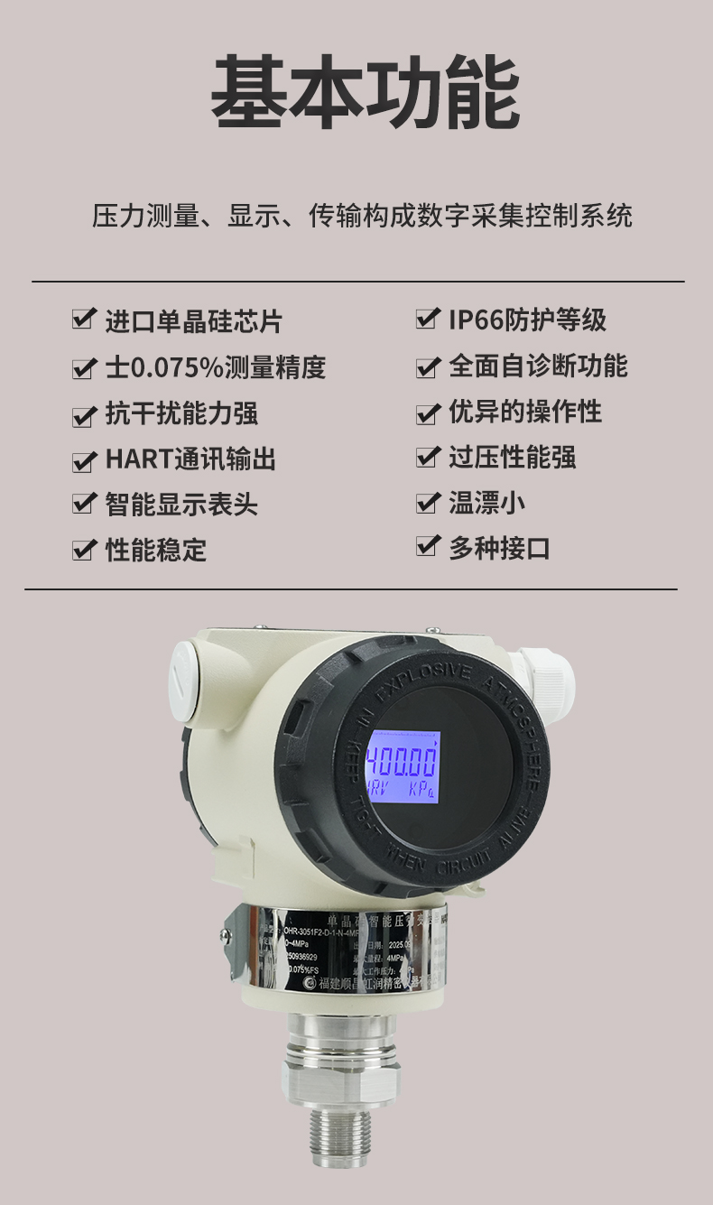 虹潤(rùn)公司是專業(yè)生產(chǎn)壓力變送器的國(guó)家專精特新“小巨人”企業(yè),生產(chǎn)的單晶硅壓力變送器,具有高精度,小溫漂,性能穩(wěn)定,帶HART通訊,抗干擾能力強(qiáng),自診斷功能等特點(diǎn)。產(chǎn)品獲得一種數(shù)字顯示低功耗壓力表、一種信號(hào)發(fā)生器裝置等2項(xiàng)國(guó)家發(fā)明專利,主持起草工業(yè)過(guò)程控制系統(tǒng)用模擬輸入兩位或多位輸出儀表、工業(yè)過(guò)程測(cè)量和控制系統(tǒng)用壓力/差壓變送器等2項(xiàng)國(guó)家標(biāo)準(zhǔn),通信系統(tǒng)多通道數(shù)據(jù)采集控制終端規(guī)范軍用標(biāo)準(zhǔn),以及現(xiàn)場(chǎng)設(shè)備集成等5項(xiàng)智能制造國(guó)家標(biāo)準(zhǔn)。參與國(guó)際5G標(biāo)準(zhǔn)制定,取得數(shù)顯壓力表等2項(xiàng)相關(guān)軟件著作權(quán)。產(chǎn)品廣泛應(yīng)用于化工、食品、制藥、電力、設(shè)備配套、供暖、水處理、樓宇等行業(yè),需精準(zhǔn)測(cè)量流體壓力的現(xiàn)場(chǎng)。
