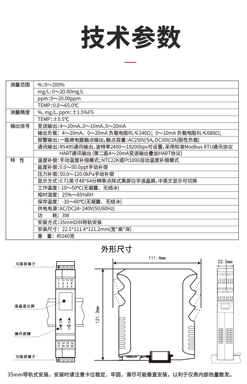 虹潤公司是專業(yè)生產(chǎn)水質(zhì)分析儀的國家專精特新“小巨人”企業(yè)。生產(chǎn)的導(dǎo)軌式溶解氧變送器,具有測(cè)量穩(wěn)定不跳字,液晶按鍵操控,變送輸出精準(zhǔn),寬范圍電源供電,RS485或HART通訊等特點(diǎn)。產(chǎn)品獲得一種高精度在線溶解氧測(cè)量?jī)x表、智能化控制器、一種信號(hào)發(fā)生裝置等3項(xiàng)國家發(fā)明專利;主持起草現(xiàn)場(chǎng)設(shè)備集成等5項(xiàng)智能制造國家標(biāo)準(zhǔn),以及現(xiàn)場(chǎng)設(shè)備工具(FDT)接口規(guī)范、工業(yè)過程控制系統(tǒng)用模擬輸入兩位或多位輸出儀表、過程分析技術(shù)系統(tǒng)等3項(xiàng)國家標(biāo)準(zhǔn);參與國際5G標(biāo)準(zhǔn)制定,取得導(dǎo)軌溶解氧變送器等3項(xiàng)相關(guān)軟件著作權(quán)。產(chǎn)品廣泛應(yīng)用于實(shí)驗(yàn)室、水處理、環(huán)境監(jiān)測(cè)、制藥、食品、農(nóng)業(yè)、工業(yè)流程控制等諸多領(lǐng)域。