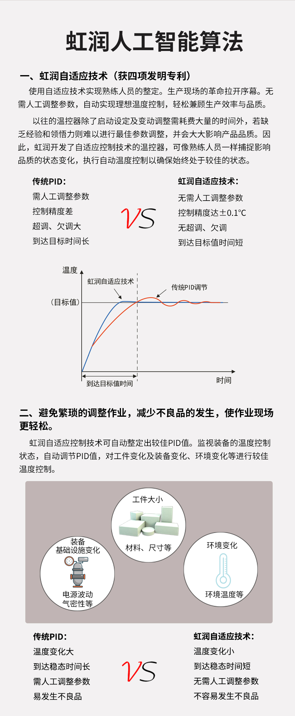 虹潤(rùn)公司是專(zhuān)業(yè)生產(chǎn)無(wú)紙記錄儀的國(guó)家專(zhuān)精特新“小巨人”企業(yè)。生產(chǎn)的觸摸屏溫控器,具有觸摸大屏顯示,真正人工智能算式,無(wú)需人工整定參數(shù),控制精度達(dá)士0.1°C, RS485/以太網(wǎng)通訊,5/7/9英寸可選等特點(diǎn)。產(chǎn)品獲得智能化控制器、人工智能調(diào)節(jié)器及調(diào)節(jié)方法、模糊PID控制儀及控制方法、平板無(wú)紙記錄儀、巡回檢測(cè)顯示方法及裝置等5項(xiàng)國(guó)家發(fā)明專(zhuān)利,主持起草物聯(lián)網(wǎng)智能記錄儀表通用技術(shù)條件、物聯(lián)網(wǎng)智能溫度儀表通用技術(shù)條件、工業(yè)過(guò)程測(cè)量和控制系統(tǒng)用智能調(diào)節(jié)器等3項(xiàng)國(guó)家標(biāo)準(zhǔn),通信系統(tǒng)多通道數(shù)據(jù)采集控制終端規(guī)范軍用標(biāo)準(zhǔn),以及空間數(shù)據(jù)與信息數(shù)據(jù)傳輸系統(tǒng)等2項(xiàng)航天標(biāo)準(zhǔn),參與國(guó)際5G標(biāo)準(zhǔn)制定,取得觸摸屏彩色調(diào)節(jié)無(wú)紙記錄儀等3項(xiàng)相關(guān)軟件著作權(quán)。產(chǎn)品廣泛應(yīng)用于電力、石化、冶金、化工、食品、制藥、熱處理、水處理、機(jī)械配套等諸多領(lǐng)域。