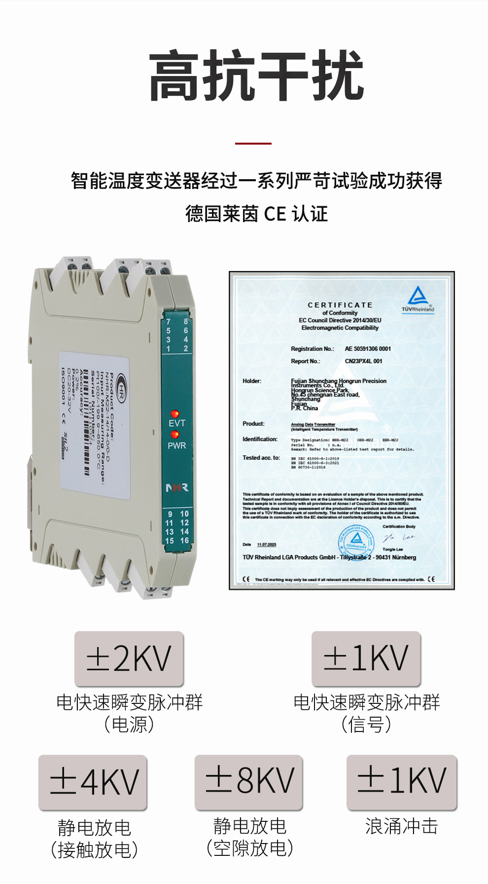 虹潤公司是專業(yè)生產(chǎn)溫度變送器的國家專精特新“小巨人”企業(yè)。生產(chǎn)的溫度變送器,具有采用磁隔離技術(shù),配套編程器可修改參數(shù),抗干擾能力強,穩(wěn)定性好,帶RS485或HART通訊等特點。該產(chǎn)品不僅通過HART基金會認證、德國萊茵 CE 認證與 SIL 功能安全認證,還獲得具備減震抗干擾能力的溫度變送器、信號隔離器、一種二端子模塊、無源信號隔離器等4項國家發(fā)明專利,主持起草物聯(lián)網(wǎng)智能溫度儀表、現(xiàn)場設(shè)備工具(FDT)接口規(guī)范、工業(yè)過程測量和控制系統(tǒng)用溫度變送器等3項國家標準,以及通信系統(tǒng)多通道數(shù)據(jù)采集控制終端規(guī)范軍用標準,參與國際5G標準制定,取得溫度變送器等5項相關(guān)軟件著作權(quán)。產(chǎn)品廣泛應(yīng)用于石油、電力、化工,冶金、制藥、紡織、橡膠制造等工業(yè)領(lǐng)域現(xiàn)場自動化測溫過程。