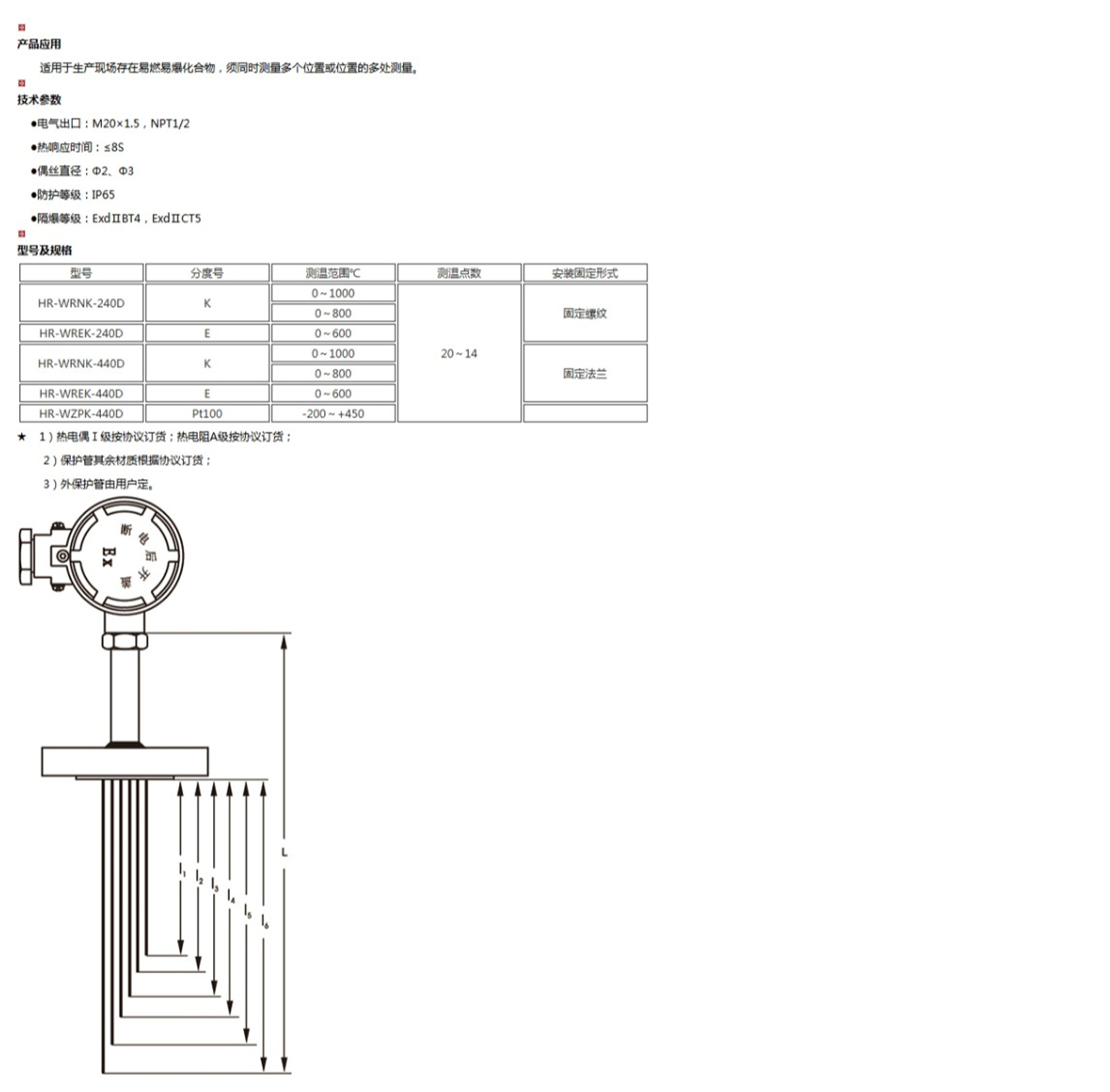 多點(diǎn)隔爆熱電偶(阻)適合生產(chǎn)現(xiàn)場(chǎng)存在易燃易爆化合物,須同時(shí)測(cè)量多個(gè)位置或位置的多處測(cè)量。廣泛應(yīng)用于石油化工精餾塔裝置。